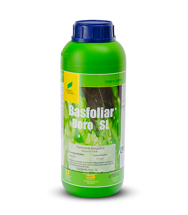 Fertilizante foliar Líquido, con alta concentración de BORO (13% p/v), ideal para corregir deficiencias o utilizarlo en las etapas de mayor demanda del elemento.